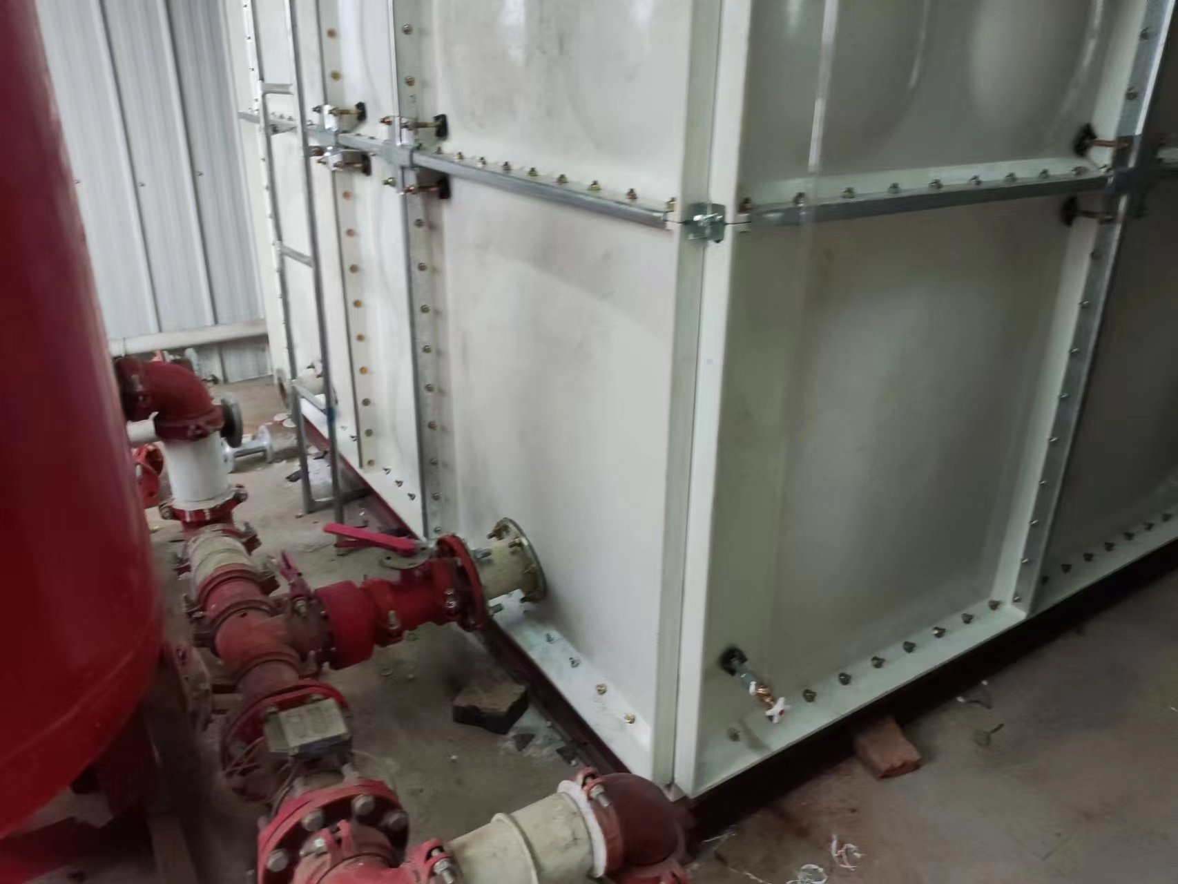我司承接的山東省德州市平原縣紡興纖維廠地震災后重建項目,21.9立方SMC玻璃鋼消防水箱已經安裝試水完成。SMC組合式玻璃鋼水箱是一種普遍采用的儲水方式。是由SMC單元板現場組裝而成的一種水箱。單元板用SMC(sheet moulding compound)片材在高溫高壓下模壓成型,水箱內采用加強式支撐,其鋼配件選用熱鍍鋅件和不銹鋼件均可。板塊厚度的選取依據板塊所受的壓力和所處的位置。有5mm、8mm、10mm、12mm、14mm、16mm等。