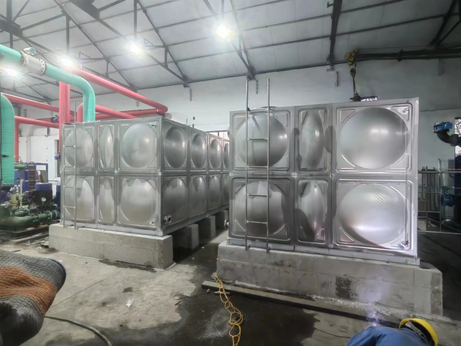 不銹鋼水箱施工方便快捷:標準沖壓板塊1000×1000、1000×500、500×500mm隨意裝配現(xiàn)場組裝焊接,無需吊裝設(shè)備。