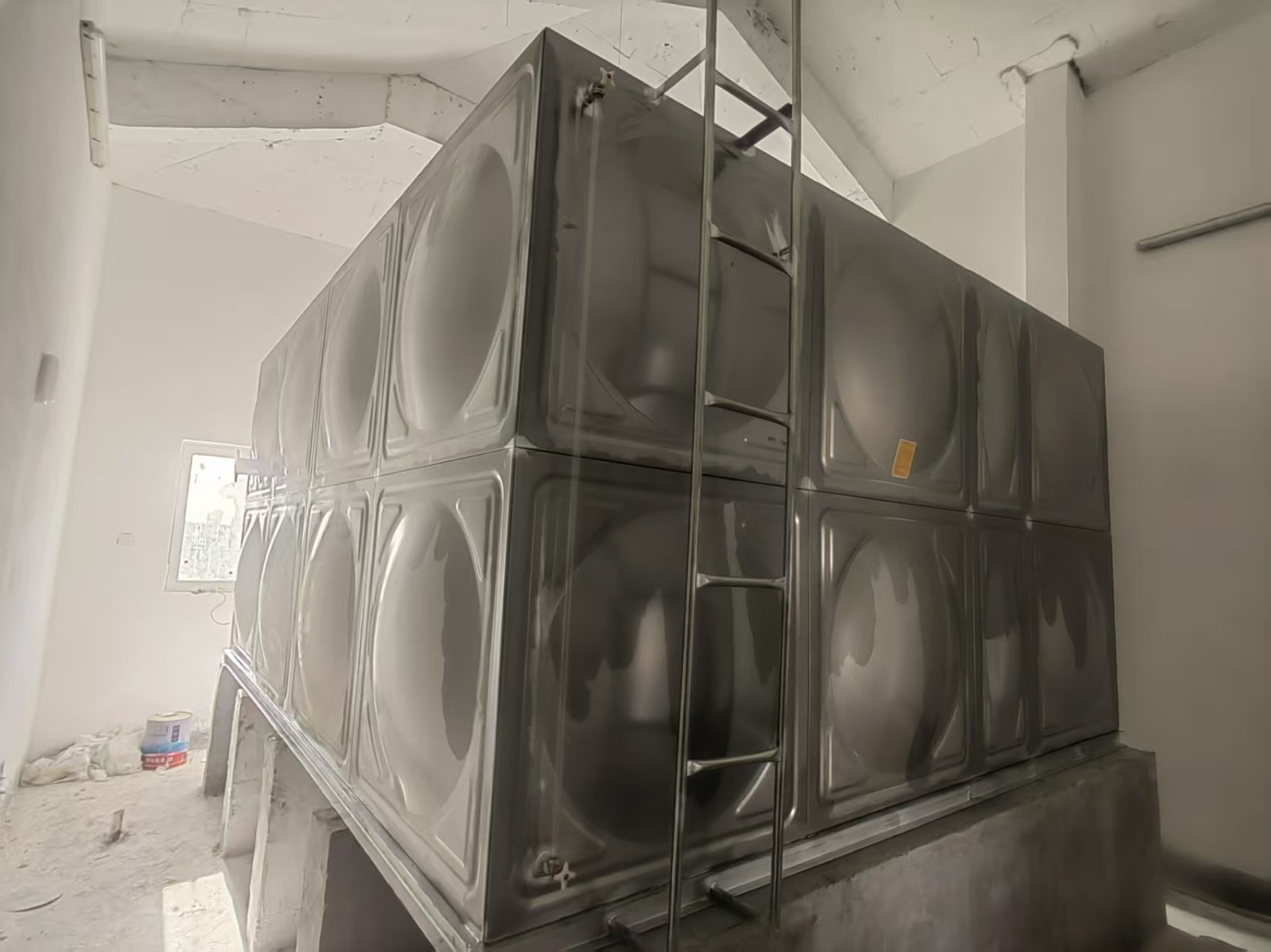 不銹鋼水箱設(shè)置會將水滴上的露珠集中在水箱上,然后流到排水的地方,這樣可以防止槽鋼濕潤且不生銹。